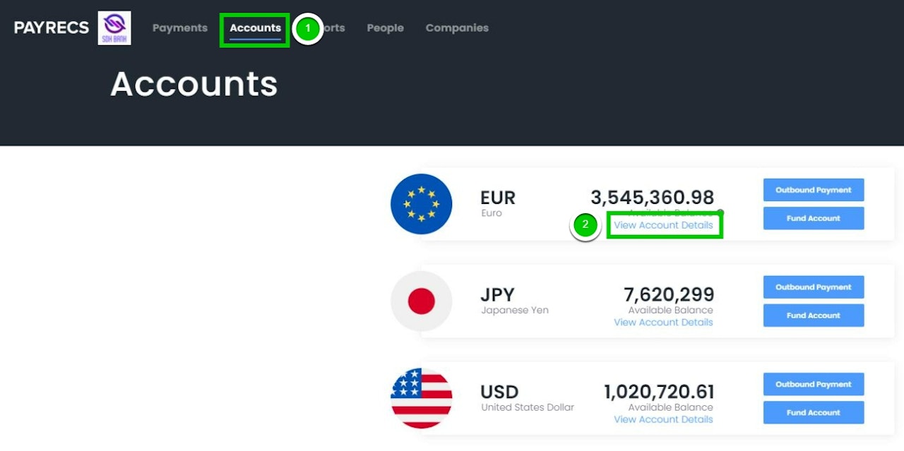 Select "View Account Details" under the virtual account you would like to export