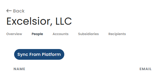 2. If changes are made in Q2 for a user, select Sync From Platform in order to pull the changes over. The user will also need to SSO back into PayRecs for the changes to take effect