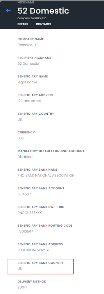 While the system allows for US bank country recipients to be created(more on that topic here), domestic wires are generally not supported in PayRecs. We recommend utilizing your online banking platform for domestic wires.