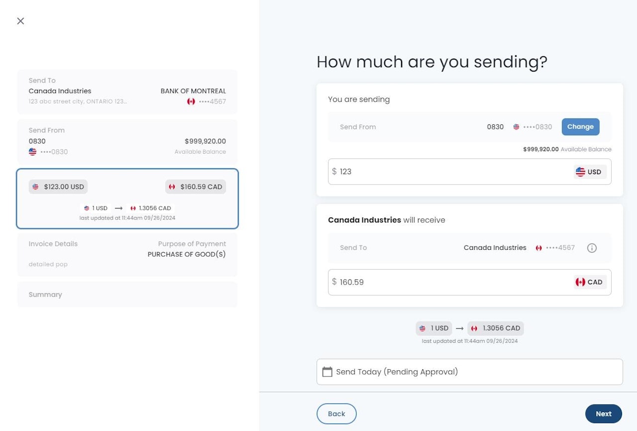 If supported, Selecting "Send Today" will allow you to schedule the payments creation at a future date. (Payment approval will be required prior to the scheduled date, if dual approval is enabled for your company)