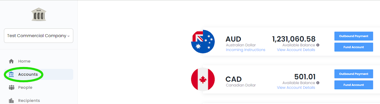 Outbound Payment - Allows you to send a wire from this account to a recipient